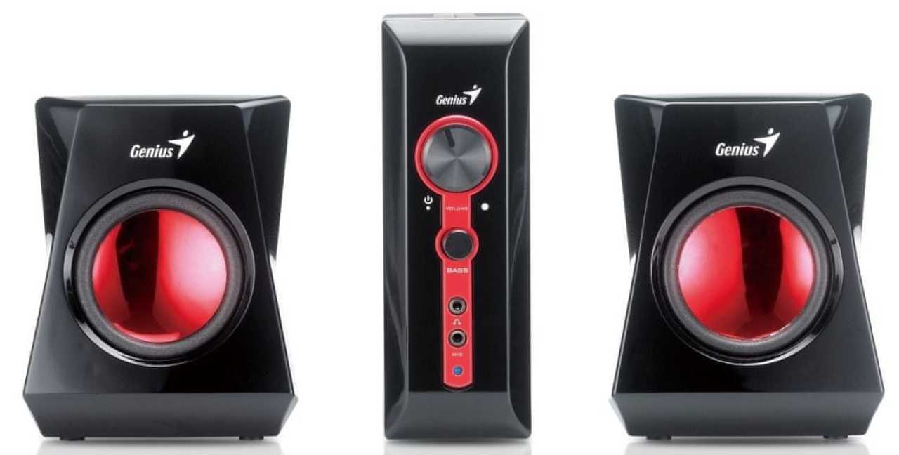 Genius GX Gaming SW-G2.1 1250 černé Sestava herních 2.1 reproduktorů Genius, která nesmí chybět u žádného výkonného herního stroje. Pořádnou porci basů si vychutnáte díky dřevěnému subwooferu s 5,25" měničem a připravte se na pořádné bitvy, které rozechvějí celý váš dům. Ani milovníci hudby si nepřijdou zkrátka, protože subwoofer v kombinaci se zaoblenými satelity a jejich magnetickými měniči reprodukuje kvalitní a dynamický zvuk. Součástí je také samostatná řídící jednotka pro ovládání hlasitosti a připojení zvukových zdrojů. Hlavní přednosti reproduktorů Genius GX Gaming Pro více informací najeď myší, pozemšťane.Obrazek zadni strana Tři důvody, proč zakoupit