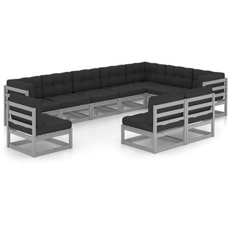 Shumee 10-dielna záhradná sedacia súprava podušky sivá masívna borovica, 3076846