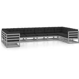 Shumee 10-dielna záhradná sedacia súprava podušky sivá masívna borovica, 3077321