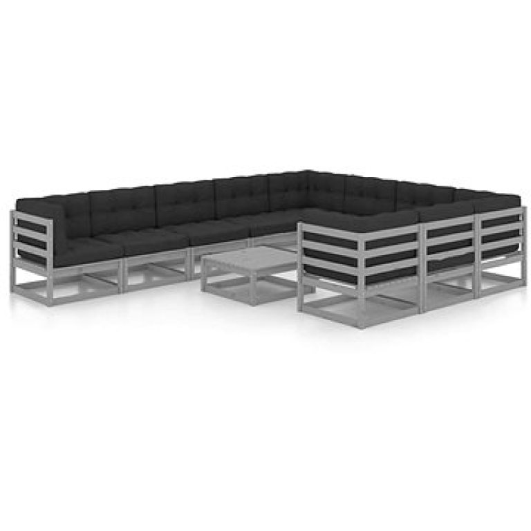 Shumee 11-dielna záhradná sedacia súprava podušky sivá masívna borovica, 3077051