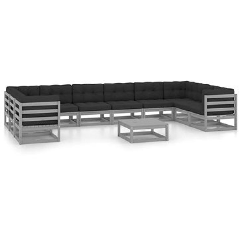Shumee 11-dielna záhradná sedacia súprava podušky sivá masívna borovica, 3077326