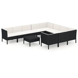 Shumee 11-dielna záhradná sedacia súprava s poduškami polyratan čierna, 3094492
