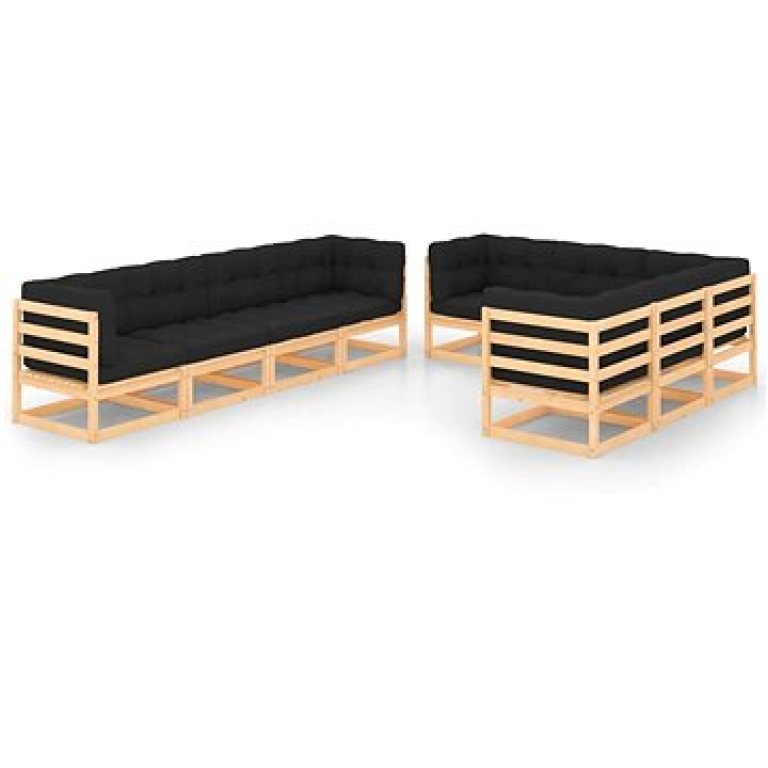 Shumee 9-dielna záhradná sedacia súprava s poduškami, masívna borovica, 3083810