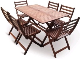 Stolová skládací sestava Vega SET 6.Pokud chcete mít skutečně luxusní nábytek, zvolte dřevinu.meranti. Tato dřevina Vás na první pohled upoutá svou.atraktivní červenohnědou barvou a unikátní kresbou dřeva.Vyznačuje se velkou tvrdostí a dlouhou životností. Nábytek z.meranti se nemusíte bát nechat ve venkovním prostředí, protože.je odolný proti povětrnostním podmínkám. A pokud o něj budete.i náležitě pečovat, vydrží Vám spoustu let.Je vhodný jak pro domácí použití, tak i pro komerční použití,.v prostorách s přístupem veřejnosti (např. hotely,.restaurace, rekreační střediska a pod.).Nábytek je dodáván v rozebraném stavu zabalen do papírových.kartonů s popisem zboží v angličtině od výrobce. Součástí.dodávky je potřebný spojovací materiál, kování, imbusový.nebo stranový klíč a jednoduchý montážní návod.