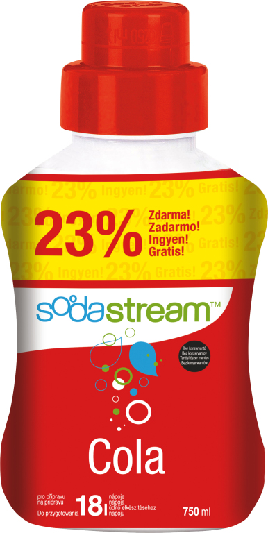 Sirup SodaStream s príchuťou Coly dodá obyčajnej vode tú správnu chuť a poteší vaše chuťové poháriky. Sirupy tejto originálnej značky sú vyrábané z veľmikvalitných ingrediencií a svojou konzistenciou sú špeciálne určené pre sódovú vodu. Odporúča sa riediť v pomere 1 : 23, aby skvele vynikla aróma coly. Sirup je určený na použitie svýrobníkom sódy značky SodaStream. S objemom 750 ml vám vystačí až na 18 litrov nápoja. Príprava nápoja Príchuť pridávajte vždy až do hotovej perlivej vody. Nikdy nepridávajte príchuť do vody ešte pred začatím prípravy vo výrobníku domáce perlivej vody, pretože by došlo k vypeneniu nápoja z fľaše a zalepenie útrob výrobníku. Fľašu s pripravenou perlivou vodou nakloňte apríchuť pomaly nalievajte po stene fľaše. Viečko na príchuti slúži zároveň ako odmerka pre doporučený pomer riedenia (1 viečko na 1 nápojovú fľašu SodaStream). Fľašu zatvorte a jemne premiešajte. Zloženie Cukor, voda, farbivo (amoniak-sulfitový karamel), kyseliny (fosforečná), prírodná aróma, sladidlá (acesulfam K, sukralóza), regulátor kyslosti (citrany sodné), kofeín 0,14 %). Neobsahuje alergény. Obsahuje kofeín. Výživové údaje