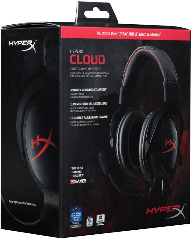 Hrajte s maximálním komfortem s herním headsetem HyperX® Cloud.Sluchátka jsou optimalizována pro profesionální hraní a mají mimořádně měkce vystlaný hlavový most, ušní polstrování z paměťové pěny a klapky vystlané umělou kůží, takže vám umožní hrát celé hodiny bez pocitu bolesti. Souprava vyhovuje standardu HiFi, je kompatibilní s adaptérem pro zapojení v letadle a vyznačuje se bohatým zvukem a výrazným designem HyperX. Sluchátka HyperX Cloud se opírají o dvouletou záruku, bezplatnou technickou podporu a pověstnou spolehlivost, díky kterým si výrobky HyperX hráči vybírají již více než deset let.Bezbolestné hraní.Jen ať to vaši protivníci pěkně slíznou, zatímco vy budete hrát bez obtíží. Se sluchátky HyperX® Cloud budete mít hlavu jako v bavlnce díky obzvláště měkkému vycpanému sluchátkového pásku, vycpávkám náušníků z paměťové pěny a koženkou vycpanými náušníky, takže pozdní herní večery strávíte v pohodlí. Sluchátka jsou cenově dostupná, a nebudou tak pohromou ani pro vaši peněženku.Sluchátka HyperX Cloud jsou optimalizována k profesionálnímu hraní (pro-gaming), přičemž disponují zvukovým výstupem v kvalitě Hi-Fi a krystalicky čistým zvukem ve spodních, středních i vysokých polohách a zvýrazněnými basy, takže se při vyhrávání můžete pěkně odvázat. Během hraní budete navíc vypadat cool díky unikátnímu designu HyperX.Všestraně kompatibilní.Sluchátka HyperX Cloud jsou kompatibilní se stolními i přenosnými počítači, tablety, mobilními telefony, používáním v letadle a konzolemi PS4 a Xbox One*.Zvýšené pohodlí.Sluchátka HyperX Cloud jsou dodávána s vycpávkami náušníků z paměťové pěny a vyměnitelnými náušníky s různými možnostmi textur pro nejrůznější zvukové profily.Vynikající kvalita zvuku.Sluchátka HyperX Cloud nabízejí zvuk v kvalitě HI-Fi díky 53mm budičům a zaručují vynikající kvalitu zvuku při hraní nebo v profesionálním zvukovém prostředí. Krystalicky čistý zvuk ve spodních, středních i vysokých polohách a zvýrazněné basy vás doslova vtáhnou do hry.Odpojitelný vysoce kvalitní mikrofon.Odpojitelný vysoce kvalitní mikrofon je vybaven tenčím chráničem mikrofonu a lze jej snadno připojit při používání ve hrách – nebo odpojit při poslechu hudby.Optimalizováno k profesionálnímu hraní.Sluchátka HyperX Cloud jsou doporučována těmi nejelitnějšími světovými herními organizacemi. Jedná se o oficiální headset profesionálních herních organizací, jako jsou například Intel Extreme Masters, Alliance Gaming, Team Liquid a SK-Gaming.Elegantní design s vylepšeným příslušenstvím.Headsety HyperX Cloud jsou dodávány s veškerým potřebným příslušenstvím, včetně adaptéru pro použití v letadle, kožených a sametových vycpávek náušníků a cestovatelské síťovky, takže můžete hrát i na cestách.Od HyperX, lídra v eSports.HyperX podporuje některé z těch světově nejlepších herních týmů. Možná že sami ještě profesionálem nejste, avšak můžete hrát se stejným vybavením, které používají i tyto týmy.Technická specifikace:.Sluchátka:.