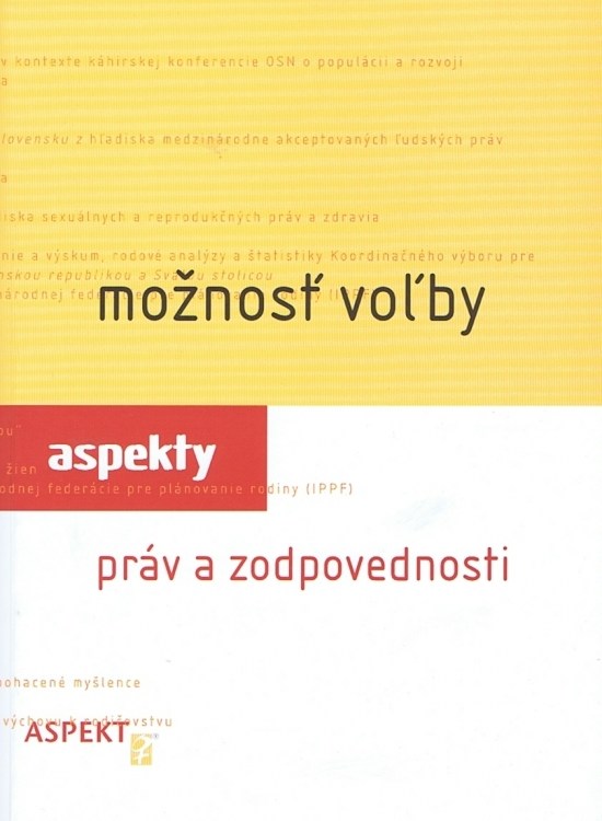 Prvý zväzok série Aspekty je venovaný mimoriadne aktuálnej a politicky výbušnej téme: reprodukčným právam občianok a občanov na Slovensku. Reprodukčné práva sa týkajú zásadných práv a slobôd a súvisia s ľudskými a občianskymi právami, politikou, filozofiou, etikou, výchovou, psychológiou, vedeckým pokrokom, spoločenskými konvenciami, kultúrnymi zvyklosťami, mocenskou štruktúrou spoločnosti, kvalitou života. a ešte s mnohým iným. Tento výber dokumentov, štúdií, výskumov a beletrie vychádza z postoja otvorenosti, postoja, ktorý zastáva politické hľadisko možnosti voľby pre ženu.Autori: Jana Cviková, Jana JuráňováŽánre: pravo_sociologia, politika_hospodarstvoVäzba: PaperbackRok vydania: 2003Počet strán: 410Šírka: 145Dĺžka: 200Hmotnosť: 330 g.