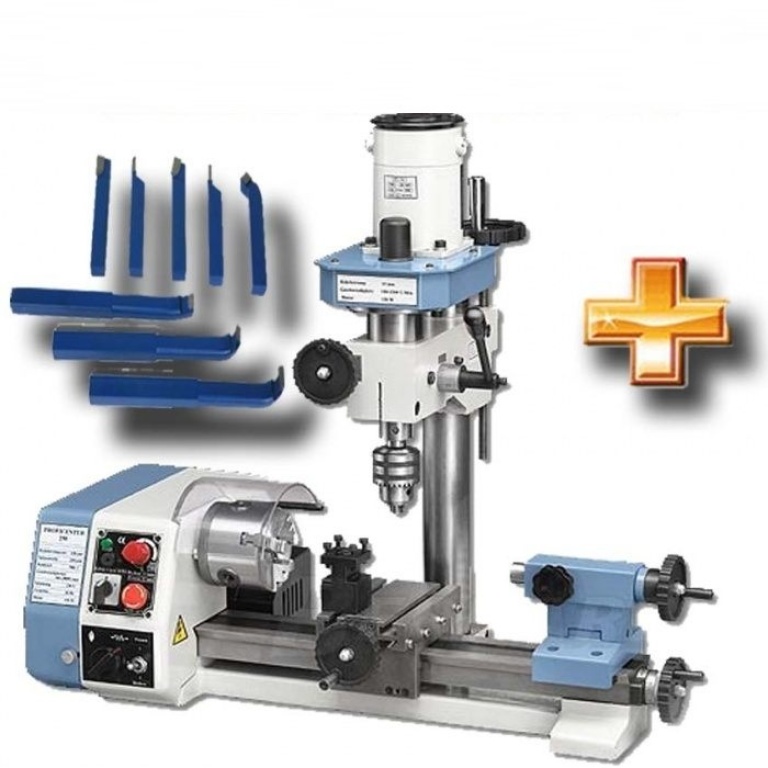 Kombi soustruh Bernardo Proficenter 250 Kombinovaný soustruh Bernardo Proficenter 250 je dodáván s frézovacím nástavcem na sloupovém stojanu. Tato kombinace nabízí pro malé a jemné úběry dostatečnou přesnost. Díky uvedené kombinaci je vhodný zejména pro modeláře. Svou výbavou spojuje tento soustruh 3 ...viac