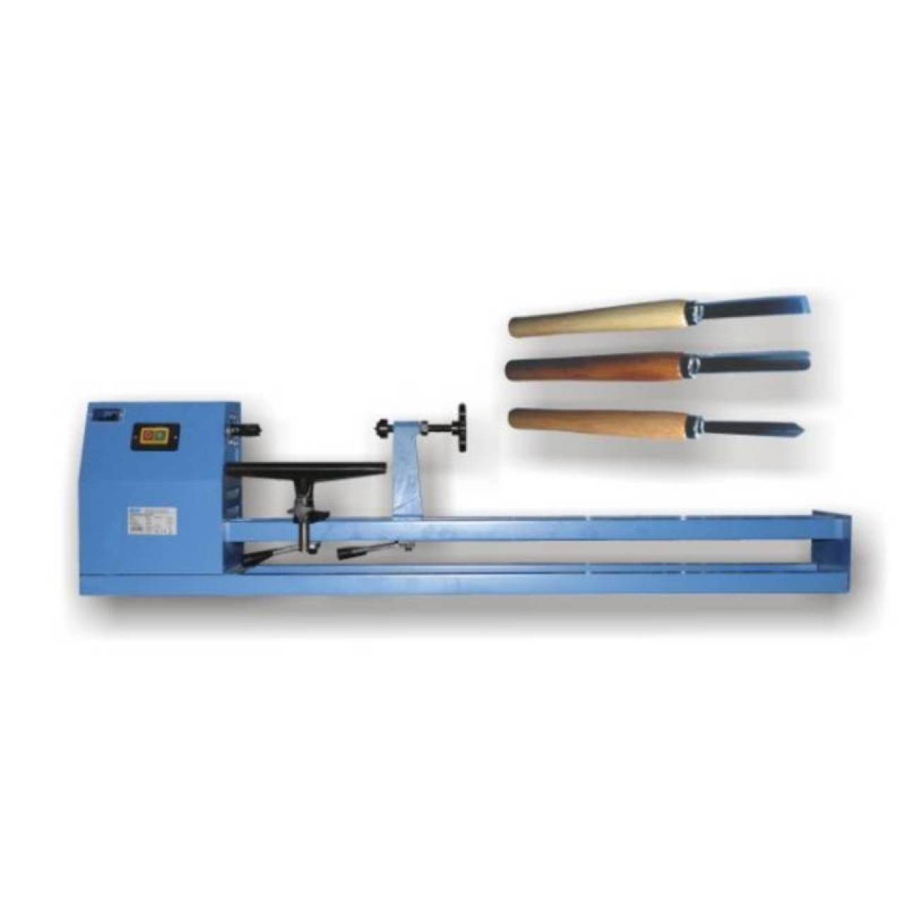 Stolní soustruh, určený k běžnému soustružení rotačních, válcových, kuželových, tvarových ploch apod. z měkkého/tvrdého dřevav podmínkách domácích dílen.4 rychlostní stupně otáčení vřetena (→ 850/1.250/1.750/2.510 ot./min., manuální nastavení pomocí řemenic).Motor 370 W/P1, vypínač v ochranném pouzdru.Konstrukce: čelní unášeč s odnímatelným krytem, lícní deska (→ průměr: 144 mm), posuvný litinový koník s výměnným hrotem, výškově/stranově nastavitelná opěrka nástrojů, ocelový vodicí rám s otvory pro montáž napevno.Příslušenství: soustružnická dláta (3).Přípojka: 230 V~50 Hz.Výkon motoru: 370 W/P1.Volnoběžné otáčky: 2.500 ot./min.Otáčky vřetena: 850 - 2.510 ot./min.Točná délka: 1.000 mm.Točný průměr: 320 mm.Váha: 24.47 kg.Záruka: 24 měsíce.