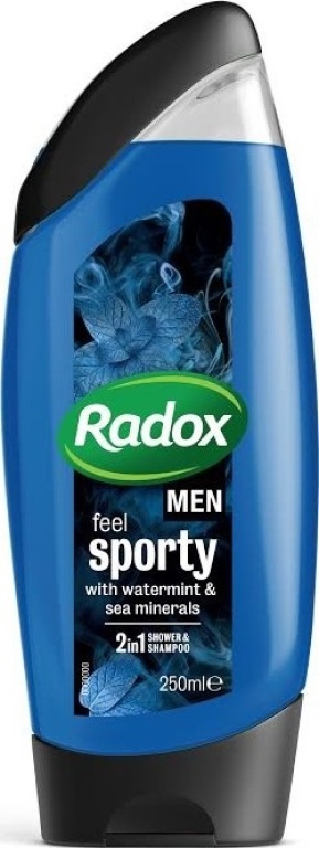 Pánsky sprchovací gél – a šampón, s mätou vodnou a morskými minerálmi.Prebuďte v sebe športového ducha so sprchovacím gélom a šampónom pre mužov RADOX Men Feel sporty watermint & sea minerals 2 v 1 s objemom 250 ml. Gél s mätou vodnou a morskými minerálmi je inšpirovaný tými najlepšími ingredienciami z prírody. Šetrne sa o pokožku tela a vlasy stará, čistí a účinne odstraňuje všetky nečistoty. Jeho hebká textúra prevonia vašu pokožku podmanivou vôňou vodnej mäty a morských minerálov. Navracia jej energiu a zanecháva osvieženú a dokonale čistú. Ponorte sa do hlbokého oceánu so sprchovacím gélom a šampónom RADOX Men Feel sporty watermint & sea minerals, ktorý povzbudí vaše zmysly a navodí pocit sviežosti. Použitie:Aplikujte prípravok na vlhkú pokožku a krúživými pohybmi vytvorte penu. Potom dôkladne opláchnite vodou.Zloženie:Aqua, Sodium laureth sulfate, Cocamidopropyl betaine, Sodium chloride, Mentha aquatica leaf extract, Maris sal, Sodium.