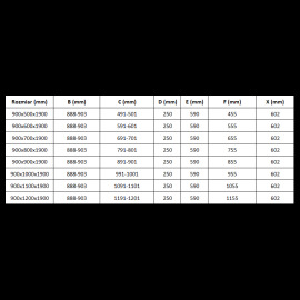 Specifikace výrobku: Velikost: 90x70 cm (dveře 90 cm, stěna 70 cm) Výška: 190 cm Montáž: Univerzální Vstup: Dveře na pantech Barva skla: Průhledné Povrchová úprava: Černá Druh skla: tvrzené Tloušťka skla: 6 mm Profil: Hliníkový Povrch usnadňující čištění : Ano Vyrovnání nerovnosti stěny: Ano Nastavitelná šířka: Ano Lze namontovat ke sprchové vaničce nebo na kachličky: Ano Kovový úchyt Sada těsnění pro odtok vody Hliníkový těsnící práh ke dveřím