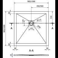 Specifikace výrobku: Velikost: 110x90x2,5 cm Barva: Antracit Typ:Obdélníkový, ultratenký Montáž: V podlaze nebo na podlahu Materiál: Minerální kompozit Povrch kamene Odolný produkt, který nepodléhá deformaci Maximální stabilita díky odolnosti vůči nárazům V sadě se sifónem čištěným shora Průměr odtoku: ...