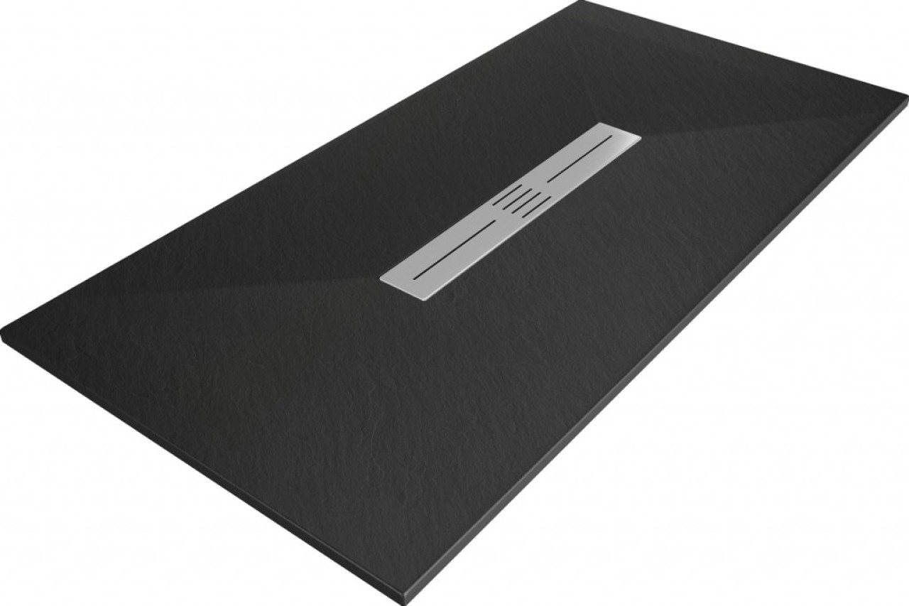 Specifikace výrobku: Velikost: 200x80x2,6 cm Barva: Černá Typ: Obdélníkový, ultratenký Montáž: V podlaze nebo na podlahu Materiál: SMC - Umělý materiál Povrch kamene Možnost přiřezání sprchové vany Odolný produkt, který nepodléhá deformaci Maximální stabilita díky odolnosti vůči nárazům V sadě se sifónem čištěným shora Průměr odtoku: 90 mm Povrchová úprava mřížky: Inox