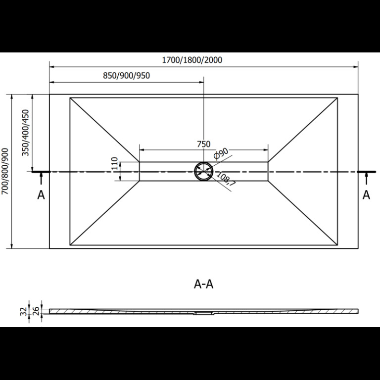 Specifikace výrobku: Velikost: 200x90x2,6 cm Barva: Bílá Typ: Obdélníkový, ultratenký Montáž: V podlaze nebo na podlahu Materiál: SMC - Umělý materiál Povrch kamene Možnost přiřezání sprchové vany Odolný produkt, který nepodléhá deformaci Maximální stabilita díky odolnosti vůči nárazům V sadě se sifónem ...viac