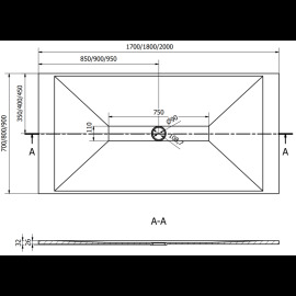 Specifikace výrobku: Velikost: 200x90x2,6 cm Barva: Bílá Typ: Obdélníkový, ultratenký Montáž: V podlaze nebo na podlahu Materiál: SMC - Umělý materiál Povrch kamene Možnost přiřezání sprchové vany Odolný produkt, který nepodléhá deformaci Maximální stabilita díky odolnosti vůči nárazům V sadě se sifónem čištěným shora Průměr odtoku: 90 mm Povrchová úprava mřížky: Inox