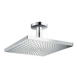 Raindance E 300 Air 1jet, horní sprcha s přívodem od stropu 100 mm.· velikost sprchové hlavice: 300 x 300 mm· druh proudu: RainAir· průtok proudu RainAir (při 0,3 MPa): 9 l/ min· kompletně chromovaný disk vodních paprsků· materiál disku vodních paprsků: kov· disk vodních paprsků lze sejmout a čistit· mosazný přívod od stropu· délka přívodu od stropu: 100 mm· způsob instalace: na strop· závit přívodů G ½· rozměr přívodů DN15Technologie EcoSmartHansgrohe sprchy a baterie vybavené technologií EcoSmart spotřebovávají o 60% méně vody než běžné produkty - bez ztráty komfortu. Takže můžete snížit spotřebu vody a náklady za energii a uchovávat tak cenné zdroje. Technologie QuickCleanNeradi uklízíte? QuickClean od Hansgrohe Vám okamžitě usnadní odstranit nečistotu a usazeniny vodního kamene z baterií a sprch. Pružné silikonové nopky se o to postarají.Technologie XXLPerformanceMilujete luxus? Velkoformátové sprchy s průměrem od 100 do 600 mm se postarají o XXL potěšení ze sprchování ve Vaší koupelně.Technologie AirPowerSprchová technologie AirPower od Hansgrohe mísí vodu se vzduchem. Dopřejte si příjemný perlivý pocit AirPower na Vaší pokožce a zároveň šetřete vodu. Voda obohacená vzduchem vytváří velké plné měkké kapky. Díky tomu používáte vodu efektivněji.Technologie EcoSmartHansgrohe sprchy a baterie vybavené technologií EcoSmart spotřebovávají o 60% méně vody než běžné produkty - bez ztráty komfortu. Takže můžete snížit spotřebu vody a náklady za energii a uchovávat tak cenné zdroje.