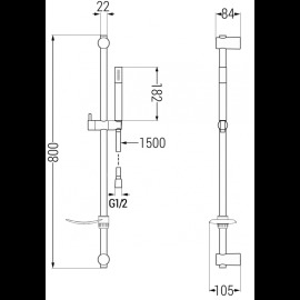 Specifikace výrobku: Materiál tyče: Nerezová ocel, ABS Povrch tyče: Černá Výška: 800 mm Šířka tyče: 22 mm Délka od zdi: 105 mm Miska na mýdlo Posuvný držák na sprchovou hlavici Nastavitelné montážní drážky Materiál hlavice: Mosaz Povrch hlavice: Černá Počet funkcí: 1 Materiál hadice: PVC Povrch hadice: ...viac