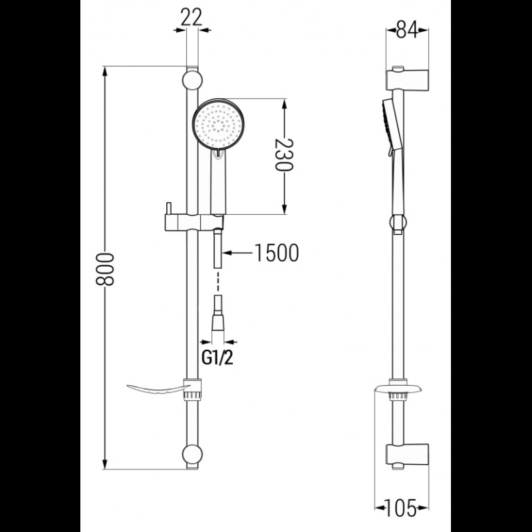 Přineste do své koupelny dotek luxusu a funkčnosti s MEXEN, posuvným sprchovým setem v sofistikovaném černém provedení. Tato souprava nejenže zlepší vzhled vaší koupelny, ale také vám poskytne jedinečný zážitek ze sprchování. Důvěřujte značce MEXEN, která je synonymem pro kvalitu a moderní design v oblasti koupelnových armatur. S nerezovou ocelí a černým povrchem přináší sprchová tyč nejen trvanlivost, ale i sofistikovaný lesk, který zaujme. Nastavitelné montážní stěnové držáky umožňují snadnou instalaci bez nutnosti nových otvorů. S precizními rozměry a chromovanou sprchovou hadicí, která zůstává snadno čistá, je tento set ideální volbou pro moderní koupelny. Navíc, mosazné hroty na hadici zabraňují nepříjemnému překroucení, a díky standardnímu připojení G 1/2" je připojení hračka. Plastová ruční sprcha s třemi funkcemi přináší do vašeho sprchování více možností a doplňuje celkový design. Udělejte z vaší koupelny místo plné elegance a modernosti. Slaďte vaši koupelnu s produkty ze stejné série. Specifikace produktu: Elegance v každém detailu Flexibilita a přizpůsobení Důmyslná sprchová hadice Sada obsahuje: Ruční hlavice Sprchová hadice Sprchový sloup Miska na mýdlo Rozměry: Šířka lišty: 2,2 cm Výška držáku: 80 cm Vzdálenost od stěny: 10,5 cm Délka sprchové hadice: 150 cm Výška hlavice: 23 cm Průměr hlavice: 10,2 cm
