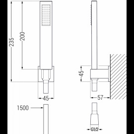 Specifikace výrobku: Materiál hlavice: Mosaz Povrch hlavice: Bílá Počet funkcí: 1 Připojení: G 1/2" Výška: 200 mm Šířka hlavice: 35 mm Materiál úchytu: Mosaz Povrch úchytu: Bílá Druh montáže: Na zdi Velikosti růžice: 45x45 mm Délka od zdi: 57 mm Materiál hadice: PVC Povrch hadice: Bílá Délka hadice: ...viac