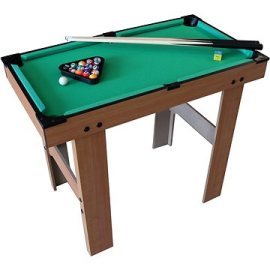 Kulečník v kvalitním dřevěném provedení. Balení obsahuje 2 tága, 16 koulí a další doplňky. Rozměry rozloženého kulečníku cca 75 × 41,5 × 62,5 cm. Baleno v krabici o rozměrech cca 76,5 × 42 × 8 cm. Věk 3+.