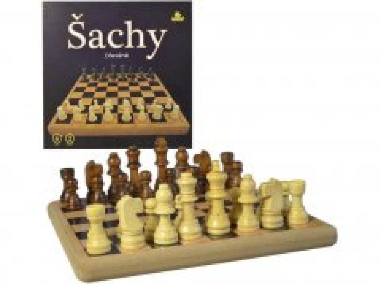 Dřevěné šachyLuxusní dřevěné šachy. Královská hra je určena pro dva hráče. Součástí balení je dřevěná deska, 32ks dřevěných figurek, návod.Hračka je určena pro děti 6+.Rozměr hračky je 21x21.