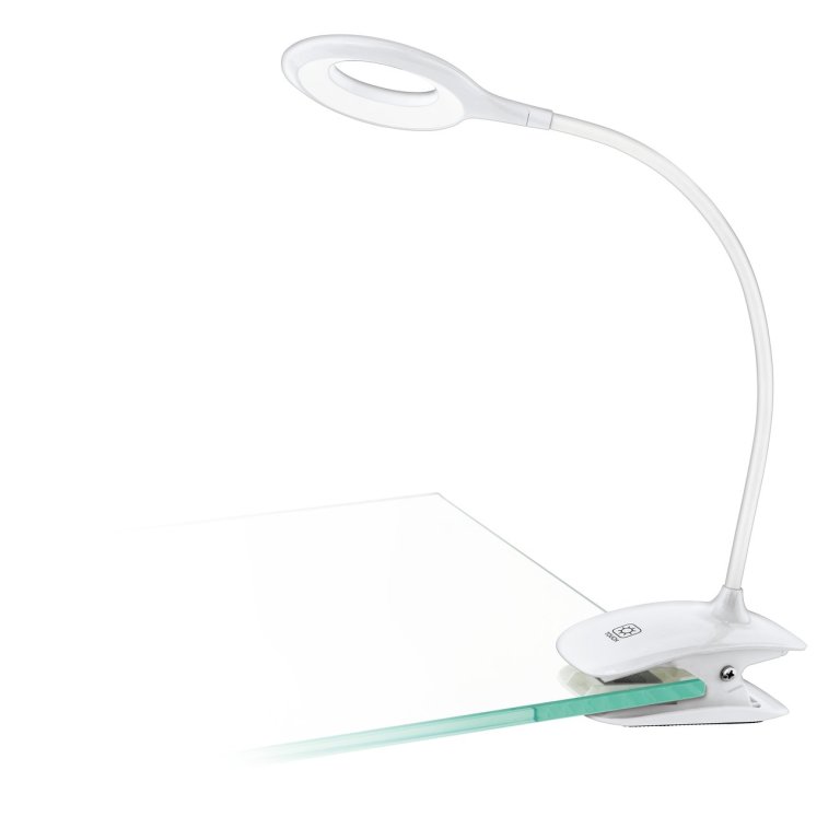 Stolní lampa s klipem -, LED, stmívatelná, příkon 3 W, světelný tok 150 lm, teplé světlo (), dotykové ovládání, na baterie, výška 42 cm, šířka 6,5 cm, materiál: plast, IP20.