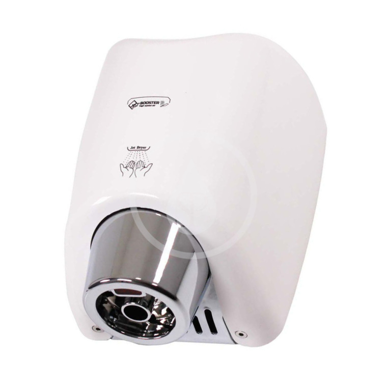 V kompaktním horkovzdušném osoušeči BOOSTER se ukrývá sušící síla tryskového vysoušeče. Konstrukce je obdobná jako u vysoušeče Jet Dryer STORM, rozdíl je však v sušící trysce, která je kruhová. Díky kovovému krytu se zaoblenými rohy je vhodný i do vysoce frekventovaných provozů. V porovnání s používáním papírových ubrousků je provoz horkovzdušného osoušeče výrazně ekonomičtější. Navíc ušetříte čas vaší uklízečky. Tryska v zajímavém kruhovém designu Osoušeč rukou BOOSTER se od jiných osoušečů vyznačuje výraznou pochromovanou tryskou kruhového tvaru. Díky silnému 550 W motoru je vysušení rukou velmi rychlé. Rychlý start Konstrukce topného tělesa je navržena tak, že dochází k prakticky okamžitému nahřátí na provozní teplotu. Antivandal kovové provedení nebo ABS plast V případě, že si vyberete osoušeč rukou BOOSTER s kovovým tělem (kartáčovaná ocel nebo bílý lak), máte jistotu vysoké mechanické odolnosti. Můžete jej tak umístit do míst, kde by jiný osoušeč neobstál, jako jsou pivnice a noční kluby. BOOSTER je také dostupný ve variantě z ABS plastu bílé barvy. Vysoký hygienický standard Vysoušeč se automaticky uvede do provozu po vsunutí rukou. Návštěvníci vašich toalet se tak nemusí ničeho dotýkat. Vzduch vycházející z vysoušeče je filtrován přes prachový filtr. Zaoblený design je navíc velmi jednoduchý na údržbu, osoušeč stačí pouze utřít vlhkým hadříkem s trochou saponátu. Prachový filtr Osoušeč BOOSTER je vybaven prachovým filtrem, který chrání motor před zanesením. Technický popis