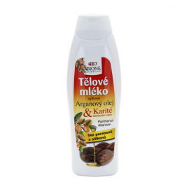 Výživné tělové mléko Arganový olej + Karité je velmi lehké, rychle se vstřebávající tělové mléko. Obsahuje regenerační, zvláčňující a hydratační složky, jako jsou allantoin, panthenol, glycerin a vzácné bambucké máslo. Arganový olej je cennou složkou obsahující nenasycené mastné kyseliny, squalen, antioxidanty, tedy látky chránící a zvláčňující zvláště suchou pokožku. Vlivem povětrnosti je pokožka těla přes den namáhána a vysoušena. Uvolňují se "stresové" hormony, které způsobují destrukci vlastních podkožních struktur, což má za následek ztrátu tonusu a pružnosti pokožky a vznik vrásek. Tělové mléko pokožku zvláční, hydratuje a doplní chybějící tuky. Allantoin a panthenol podporují obnovu buněk pokožky, glycerin hydratuje, bambucké máslo promašťuje a zvláčňuje. Po použití bude Vaše pokožka vláčná, napnutá, s hedvábným leskem. Tělové mléko je vyrobeno jako extra lehký emulgel, s využitím moderního polymerního stabilizačního systému, který umožňuje snížit obsah nežádoucích a dráždivých emulgátorů až na úroveň 0,0 % (běžná mléka až 6%). Díky tomu mléko při roztírání netvoří mýdlový efekt, rychle se vstřebává a je velmi jemné. Žádný jiný přípravek nemá složení jako Bione – tělové mléko s arganovým olejem a karité. Obsah tukové fáze: 9 % hm. min.
