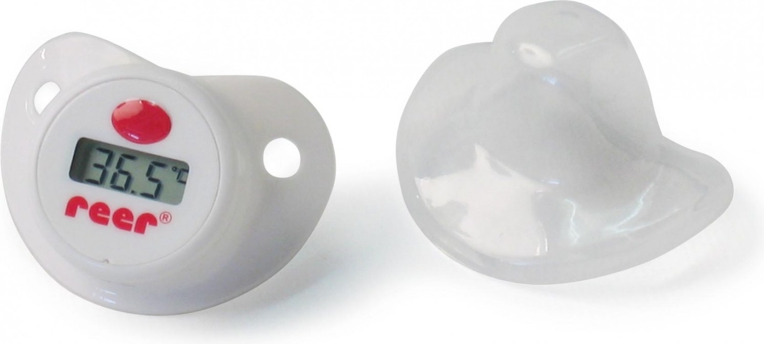 REER Digitálny teplomer cumlíkPopis:Digitálny cumlík s teplomerom od značky Reerz NemeckaDigitálny teplomer cumlík na meranie teploty Vášho bábätka. Cumlíkrýchlo a spoľahlivo zmeria teplotu Vášho bábätka. Digitálny teplomercumlík – pohodlné, moderné a presné meranie telesnej teploty. Vlastnosti:Digitálny teplomer cumlíkVhodné od narodeniaMeranie času: 90 sekúndVeľký displej pre ľahké čítanieUkladanie poslednej nameranej hodnotyAkustická signalizáciaOdolné silikónové cumlíkErgonomickýVodotesný, ľahko sa čistíUrčený len pre orálny spôsob merania teplotyCertifikované podľa smerníc EÚTechnické parametre:Materiál: plast, silikónO spoločnosti:Rodinná nemecká firma Reer je viac ako 90 rokov na trhu. Ich cieľom jeposkytovať najväčšiu ochranu pre tých najmenších. Firma Reer našlariešenie pre rodičov, ktorí ľahko vytvorí bezpečné prostredie pre životich ratolestí počas ich preskúmavanie. Ich produkty uľahčí rodičom častostresujúci každodenný život a poskytnú im väčšiu bezpečnosť a pohodu.Firma Reer vyrába užitočné a praktické produkty, ktoré súneodmysliteľnou súčasťou modernej domácnosti.
