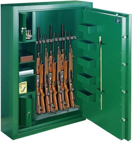 Trezor na desať zbraní SPORTN 10 EL PREMIUM.Trezor na zbrane Sport N Premium má ochranu 30/30RU jednotiek. Moderná konštrukcia garantuje najvyššiu bezpečnosť.Zámok je špeciálne chránený pancierovaním. Možné dodať iba v zelenej farbe RAL 6020.V ľavej časti trezoru oddelené prepážkou od priestoru na zbrane ...viac