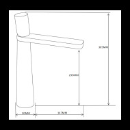 Specifikace výrobku: Materiál: Mosaz Povrchová úprava: Černá Hlavice: Keramická Perlátor: Ne Výška: 340 mm Dosah odtokového ramene: 150 mm