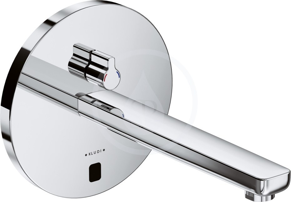 KLUDI Zenta elektronická umývadlová batéria, chróm 3840105.elektronická umývadlová batéria DN 15.vrchný diel.guľatá rozeta.napájanie cez sieťový adaptér 230 V.alebo 6 Lithium batéria CR-P2.nástenná montáž.páčka pre voľbu teploty.perlátor M 24 x 1.prietok 5 l / min pri 3 bar.s optickou registráciou objektu.vyloženie ...viac