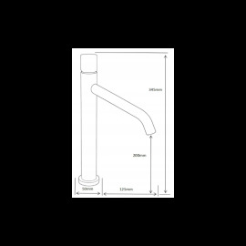 Specifikace výrobku: Materiál: Mosaz Hlavice: Keramická Povrchová úprava: Černá/Chromovaná Perlátor: Ano Třída proudění: A Výška: 345 mm Dosah odtokového ramene: 125 mm Průměr hlavice: 30 mm