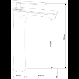 Specifikace výrobku: Materiál: Mosaz Hlavice: Keramická Povrchová úprava: Chromovaná Perlátor: Ano Třída proudění: A Výška: 283 mm Dosah odtokového ramene: 125 mm Průměr hlavice: 35 mm