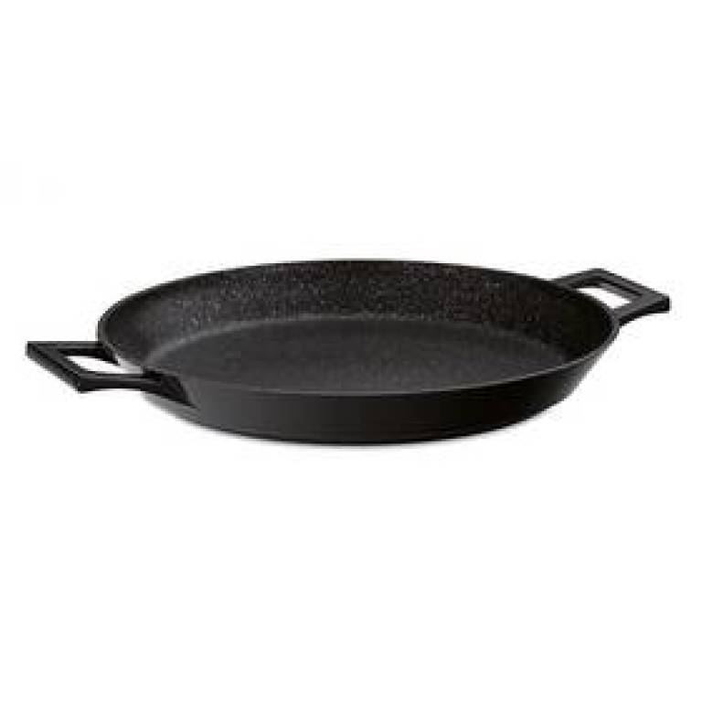 pánev.. průměr 36 cm.. výška 4,5 cm.. vysoce nepřilnavý povrch s vlastností Oil Control System.. vhodná pro všechny typy varných desek i do trouby.. rovné celonerezové dno.. ergonomicky tvarovaná rukojeť.. protiskluzová měkčená úprava rukojeti.