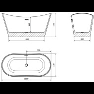 Specifikace výrobku: Velikost: 170 x 75 cm Výška: 60 cm Hloubka: 46 cm Montáž: Volně stojící Materiál: Sanitární akrylát Barva: Bílá/Černá Povrchová úprava: Zlatá Přepadový otvor: Ano Otvor na baterie: Ne V sadě sifon a kohoutek klik klak Odolnosti vůči zmatnění a UV záření