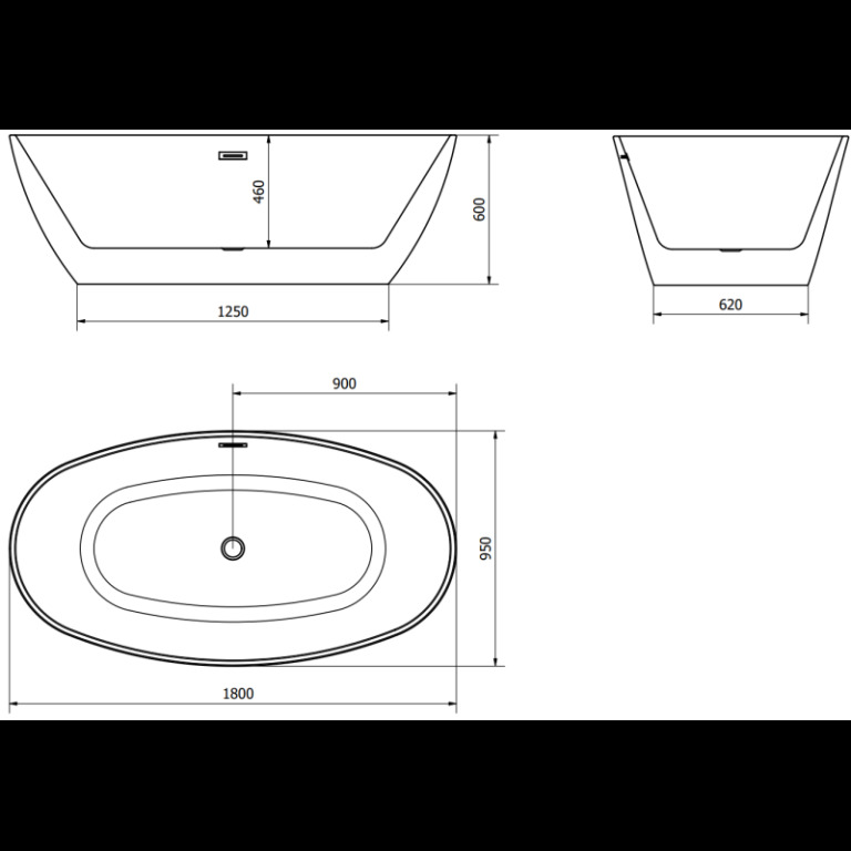 Specifikace výrobku: Velikost: 180 x 95 cm Výška: 60 cm Hloubka: 46 cm Montáž: Volně stojící Materiál: Sanitární akrylát Barva: Bílá/Černá Povrchová úprava: Chromovaná Přepadový otvor: Ano Otvor na baterie: Ne V sadě sifon a kohoutek klik klak Odolnosti vůči zmatnění a UV záření