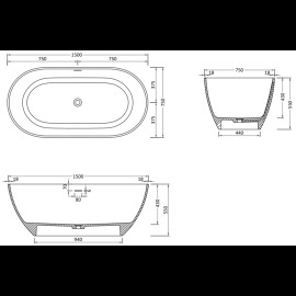 Specifikace výrobku: Velikost: 150 x 75 cm Výška: 55 cm Hloubka: 43 cm Montáž: volně stojící Materiál: Konglomerát Barva: Matná bílá Povrchová úprava: Matná bílá Prepadový otvor: Ano Otvor na baterie: Ne V sadě: Sifon a kohoutek klik klak Odolnosti vůči zmatnění a UV záření