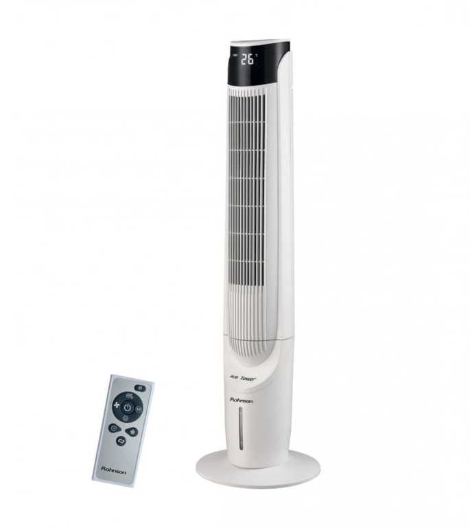Ochlazovač vzduchu 4 v 1 s funkcí ionizace, čištění vzduchu a ventilátoru s UV-C sterilizační lampou. Rohnson R-899 Ice Tower nabízí 2 režimy, časovač a dálkové ovládání.
