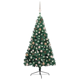 Náš umělý vánoční půl stromeček završí vaši vánoční výzdobu a pomůže vám navodit jedinečnou vánoční atmosféru! Tento krásný vánoční stromek vyrobený z PVC materiálu má velmi realistický tvar i vzhled. Ocelové nožičky zajišťují jeho stabilitu. Stromek lze umístit ke zdi, aby nezabíral mnoho místa. Tento vánoční stromeček můžete použít rok co rok, což je ve srovnání se skutečným stromkem velmi ekonomická volba. Energeticky úsporná LED světýlka se krásně rozsvítí a vytvoří útulnou sváteční atmosféru. Navíc je tento vánoční stromeček ozdobený krásnou špičkou a koulemi a stane se středem pozornosti vaší domácnosti.