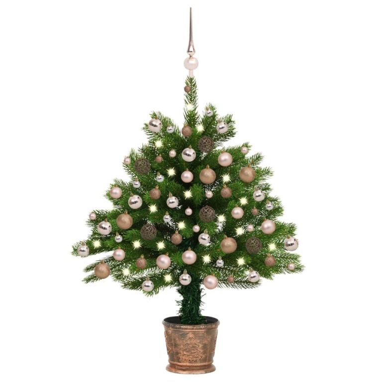 Tento překrásný umělý vánoční stromek, zasazený v košíku, se tvarem i vzhledem velmi podobá živému stromu a vykouzlí u vás tu pravou sváteční atmosféru pro nadcházející Vánoce. Větve a jehličí tohoto realistického stromku vypadající jako živé a byly vyrobeny z PE metodou vstřikování plastů. Stromek je lehký, odolný vůči vodě a povětrnostním vlivům a dlouho vydrží. Větve s jehličím lze uspořádat do libovolného tvaru. Dá se používat každý rok, což je ve srovnání s živým stromkem úspornější volba. Ocelová základna zajišťuje stabilitu. Stromek je vybavený energeticky úspornými LED světly, krásně svítí a vytváří útulnou sváteční atmosféru. Navíc je ozdobený krásnou špičkou a koulemi a bude středem pozornosti ve vaší domácnosti. Užijte si vánoční svátky s tímto krásným vánočním stromečkem!