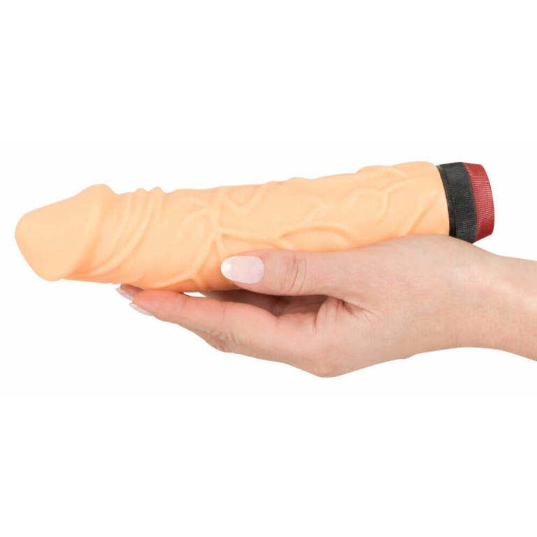 Vibrátor telovej farby realistický tvarov. Dĺžka i priemer ho radia do kategórie XL. Je to poriadny macek. Aj s ovládaním meria 23 cm, využijete tak 21 cm. Je ale dosť mohutný, v priemere cez 5 cm. A to už nie je pre každú ženu! Super je jeho tvar a detailne prepracovaný povrch aj s žilkami. Páči sa nám jeho veľký žaluď a miešok. Tvrdšie a menej poddajný materiál je ale na dotyk príjemný. Odporúčame pre skúsenejších ženy. Má výrazný žaluď, žilnatý povrch a semenníky v spodnej časti. Vibrácie má stredne silné. Žiadny zázrak, pre bežné používanie stačí. Vibračný motorček je umiestnený na konci v žaludi, tu aj vibruje nejsilněji.Můžete je nastaviť v niekoľkých stupňoch (výrobca tomu hovorí plynulo regulovateľné), napájanie zaisťujú dve tužkové batérie. - pozn. k fotkám z predajne: na fotkách a videu je to ten väčší.