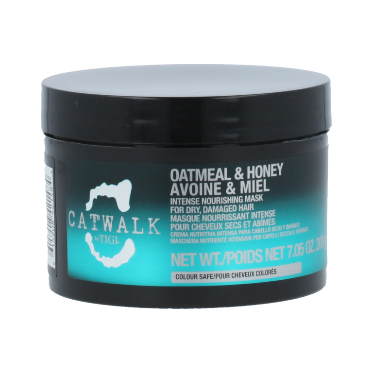 Maska na vlasy intenzivně vyživující, pro poškozené vlasy, s výtažky z ovsa a medu Maska na vlasy TIGI Catwalk Oatmeal & Honey Nourishing Mask je kosmetický přípravek, který je určen k ošetření a intenzivní výživě suchých a poškozených vlasů. Maska je obohacena o vzácné živiny, které navrací vlasům přirozený lesk a sílu. Přípravek vlasy do hloubky hydratuje a zamezuje tak dalšímu vysušování a poškození vlasů. Po použití této masky budou vaše vlasy jemné, hydratované, pružné a do hloubky vyživené. Budou se lépe rozčesávat a konečná úprava vlasů bude celkově snadnější.Bohaté složení přípravku obsahuje akátový med, který vlasy spolehlivě ošetřuje a vyživuje. Ovesné vločky celkově posilují vlasové vlákno a ochraňují je před vnějšími škodlivými vlivy. Vitamin E vlasy ochraňuje, do hloubky je vyživuje a celkově posiluje. Hydratační složky suché vlasy dostatečně hydratují a zajišťují tak jejich pružnost a přirozený lesk. Dopřejte si luxusní přípravek, který vaše vlasy dokonale ošetří, aby byly nej.