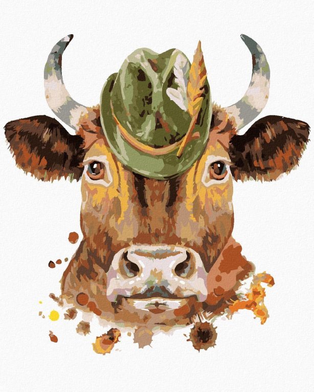 Zuty Krava poľovník, 40x50cm bez rámu a bez napnutia plátna