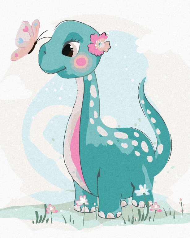 Zuty Maľovanie podľa čísel - Dinosaurus s motýlikom, 40 x 50 cm, bez rámu a bez napnutého plátna
