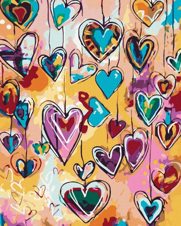 Zuty Maľovanie podľa čísel Farebné srdiečka, 40x50cm napnuté plátno na rám