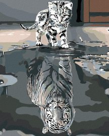 Zuty Maľovanie podľa čísel - Mačiatko alebo tiger, 40 x 50 cm, bez rámu a bez napnutého plátna