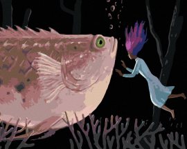 Zuty Žena s obrou ružovou rybou, 80x100cm bez rámu a bez napnutia plátna