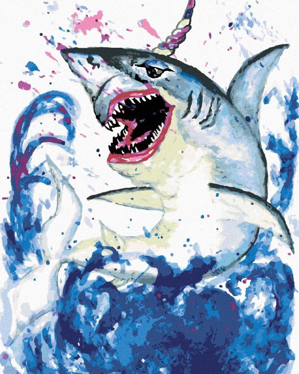 Zuty Žralok jednorožcom, 80x100cm bez rámu a bez napnutia plátna