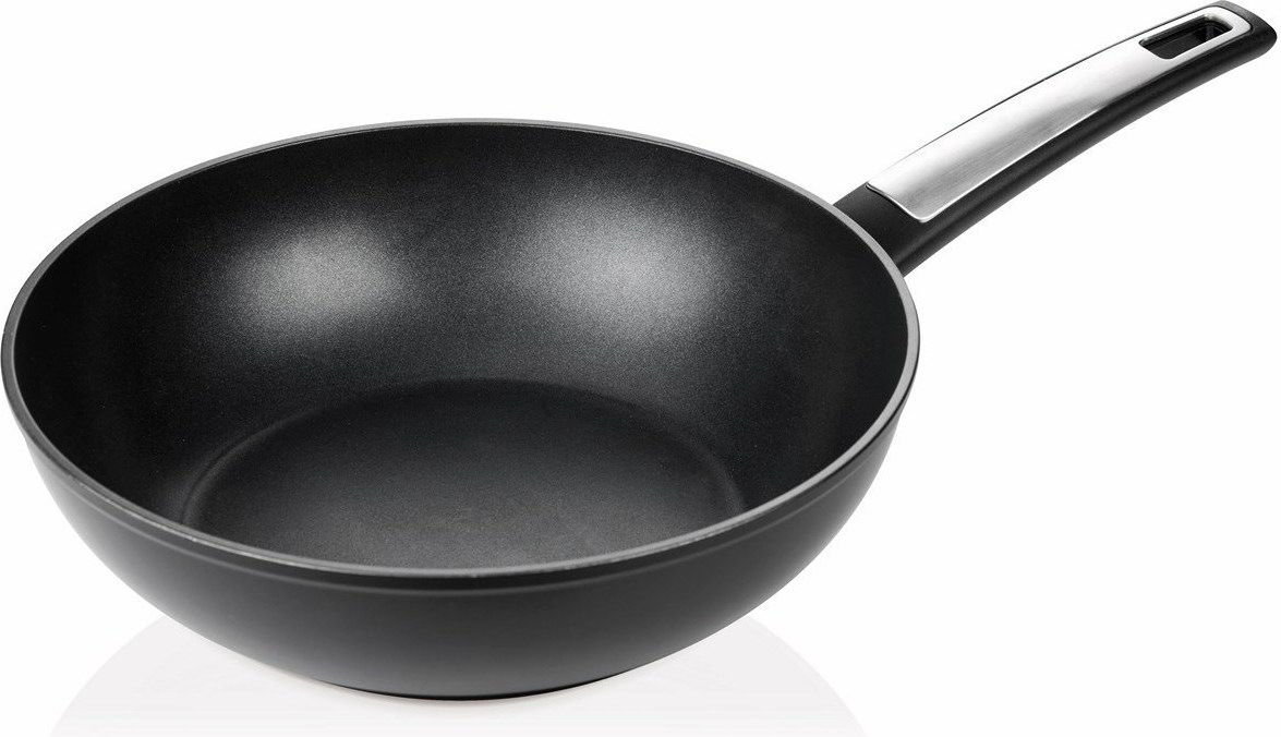 Fascinace vědou, přírodou a tradicí.Představte si všechny výhody geniálně vymyšleného kónického tvaru asijských pánví WOK. Představte si komfort nepřilnavého a snadno udržovatelného povrchu na bázi teflonu. Představte si tentýž teflon ještě zušlechtěný revoluční úpravou zvanou Stone, inspirovanou hrubozrnným povrchem přírodních neleštěných kamenů. A teď si představte všechny tyto ojedinělé vlastnosti sloučené v jednom jediném kusu nádobí. Výborně! Právě jste si představili špičkovou pánev Wok Tescoma i-PREMIUM Stone.Mistrem své kuchyněOd tohoto okamžiku už budete servírovat jen dokonale propečené steaky, celistvé a kompaktní kusy ryb, vyvážené směsi zeleniny i příloh. To vše v rekordním čase a připravené v jediné nádobě, jak je ostatně u pánví typu Wok dlouholetým zvykem. V případě pánví Wok Tescoma i-PREMIUM Stone navíc vaříte na inovativním povrchu zvaném "Stone" tedy "kámen".Speciální porézní a hrubozrnný povrch s příměsí mikroskopických kamínků zabrání tepelně upravovanému pokrmu přilnout k podkladu. Dokáže jej tou spoustou do prostoru vystupujících mikrovýběžků udržet mírně nad povrchem, téměř levitovat, a tak dovolit žhavému vzduchu, tuku nebo šťávě pod ním volně cirkulovat. Díky tomuto vyššímu stupni nepřilnavosti se maso, zelenina nebo jiný pokrm rovnoměrně, a přitom velice šetrně propéká a my můžeme např. u steaků dosáhnout obdivuhodně profesionálních výsledků. Univerzálně použitelnéAť připravujete, steaky, pečeni, rybu, nebo zeleninové směsi s přílohou, nebo dokonce moučníky, na pánvích Wok Tescoma i-PREMIUM Stone díky masívnímu jádru z tepelně supervodivé hliníkové slitiny vše zvládneme v překvapivě krátkém čase a s minimální spotřebou energie. A je úplně jedno, vaříme-li na plynovém sporáku, sklokeramické desce nebo indukčním vařiči. Široké magnetické dno z nerezové oceli je přizpůsobeno všem běžně užívaným zdrojům tepla.A nebojte se, skutečně robustní a hrubostěnné zpracování zabrání deformaci pánve i při relativně vysokých teplotách. Nic se nepřipálí. Vše zůstane šťavnaté, s původní co nejpřirozenější chutí i strukturou. To vše, pokud budete chtít, bez jediného gramu přidaného tuku.Snadno udržovatelnéDíky teflonovému povrchu je pánev velice snadno udržovatelná. Prakticky stačí opláchnout vodou, setřít vlhkým hadříkem, nebo zcela bez omezení umývat v myčce na nádobí. Stále však myslete na to, že pracujete s teflonem. Ač díky úpravě Stone s o poznání odolnějším. Vyhněte se proto čemukoliv, co by mohlo unikátní povrch poškrábat. To platí i během vaření, kdy doporučujeme používat výhradně plastové nebo dřevěné nádobí.